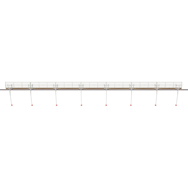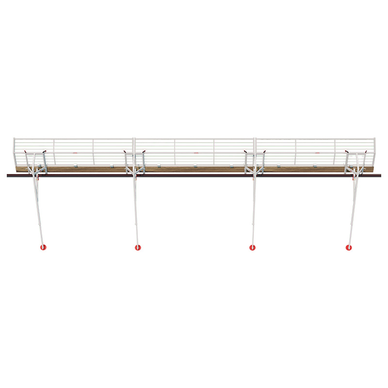 Das System besteht aus folgenden Teilen: Pfosten (Ständer), Gitter, Bordbrett (Fußleiste), Hakenbügel und der geforderten Sicherheitsfußplatten.