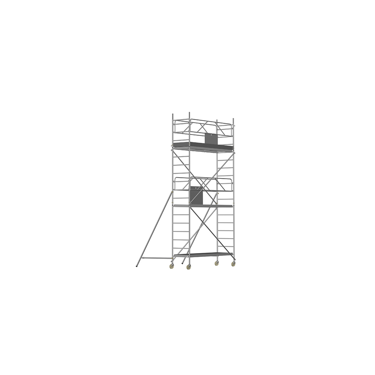 Unsere Fahrgerüste mit Rechtecksprossen entsprechen einer äußerst robusten Handwerkerausführung. Der Aufbau ist kinderleicht, da es sich um einfache Steckverbindungen handelt. Die Diagonalen werden an Bolzen mit Fallzunge, welche am Ständerrohr angeschweißt sind, eingehängt.