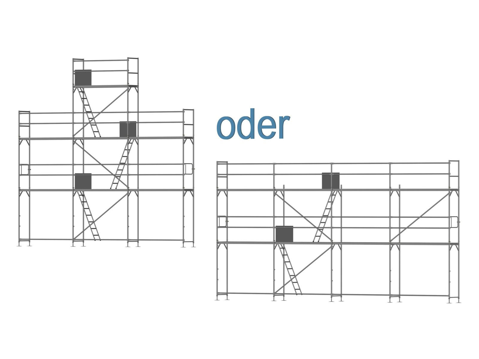 | Art-Nr. | Bezeichnung | Material | inkl. Aufstieg / Befestigung | inkl. Bordbretter | inkl. Teile für Umbau auf Traufseitengerüst | Listen-Preis € | Online-Preis € | |