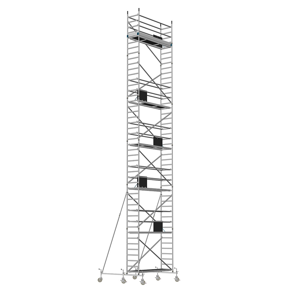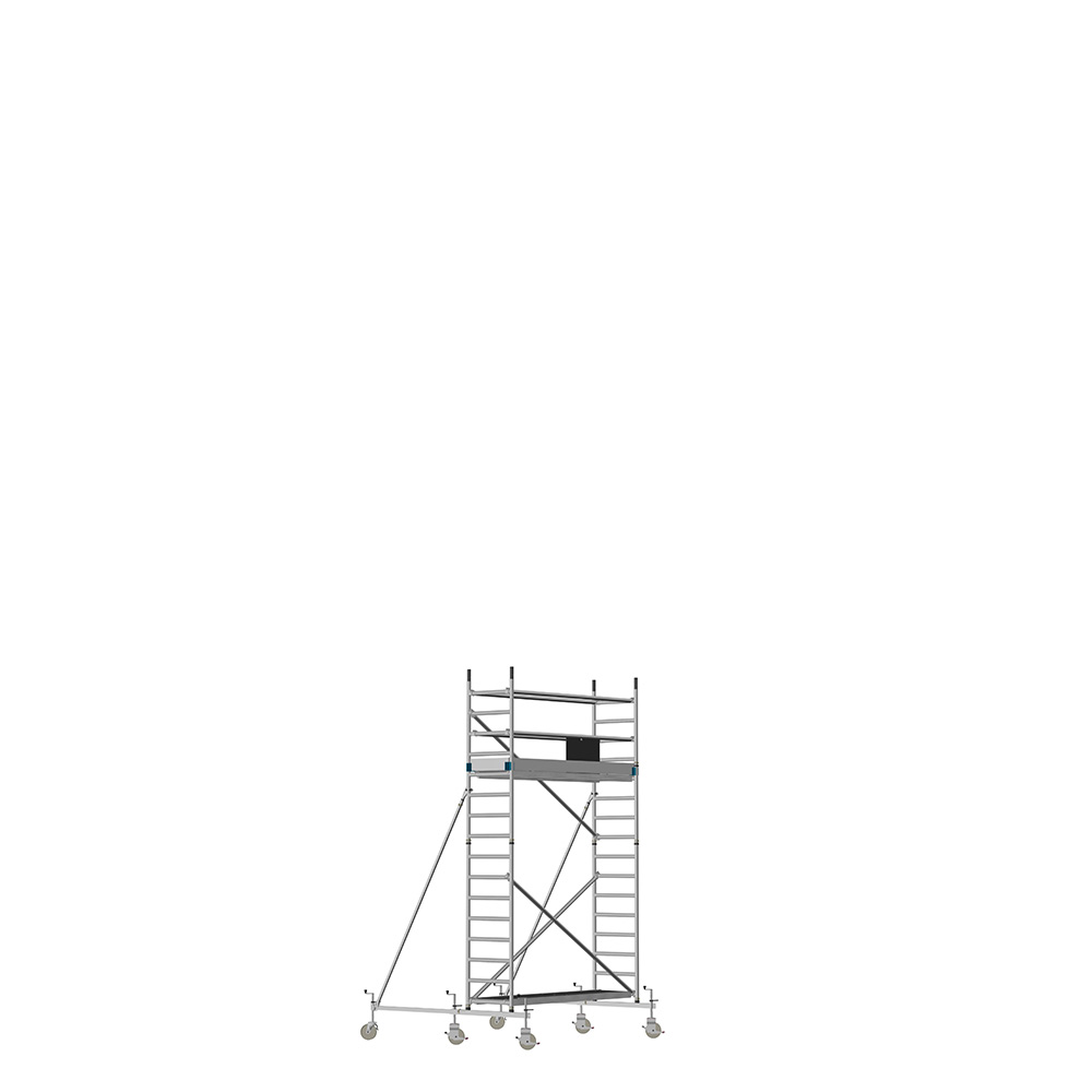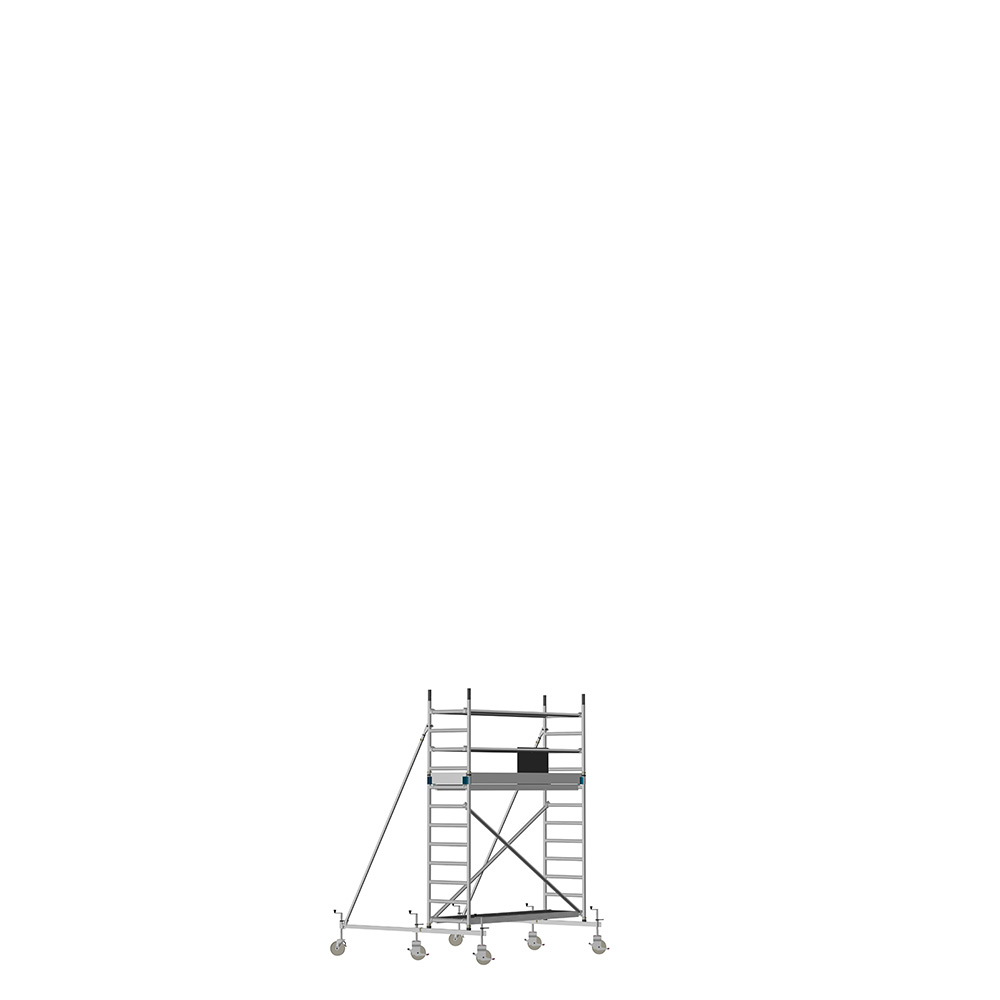 Unsere Fahrgerüste mit Rundsprossen entsprechen einer extra stabilen Industrieausführung. Der Aufbau ist kinderleicht, da es sich um einfache Steckverbindungen handelt. An den Diagonalen und Horizontalen (Geländer) sind Aluminiumklauen angeschweißt, welche formschlüssig über der Rundsprosse liegen. Eine spezielle Sicherung verhindert versehentliches Aushängen.
