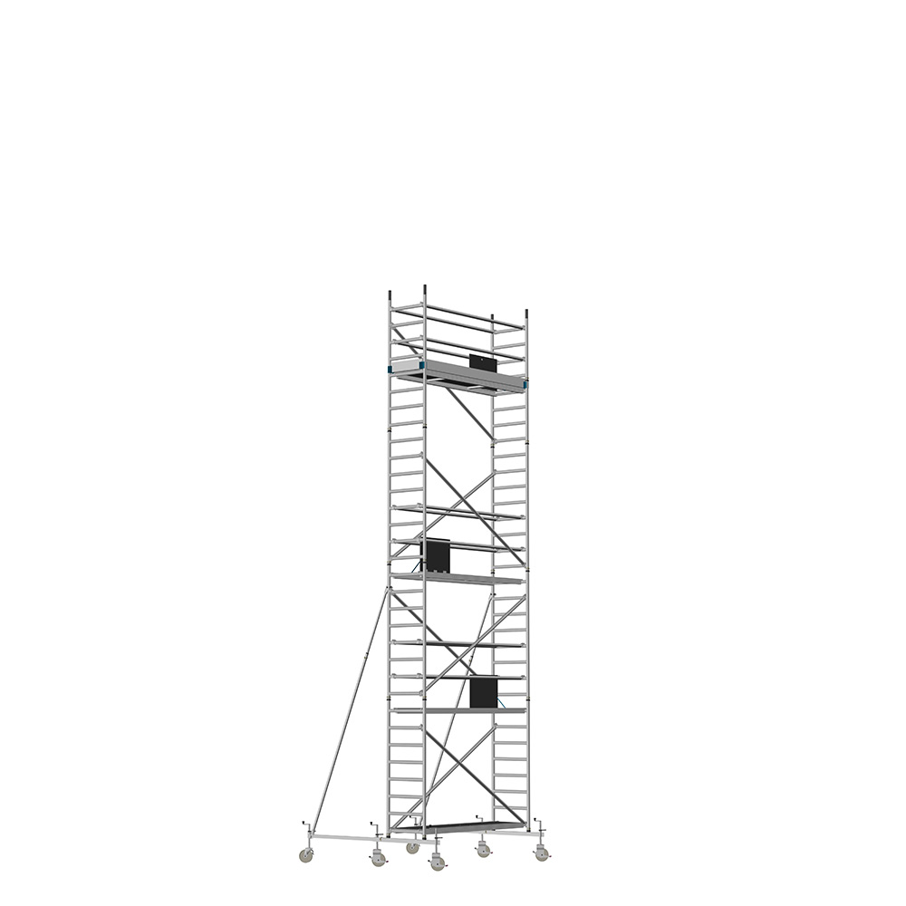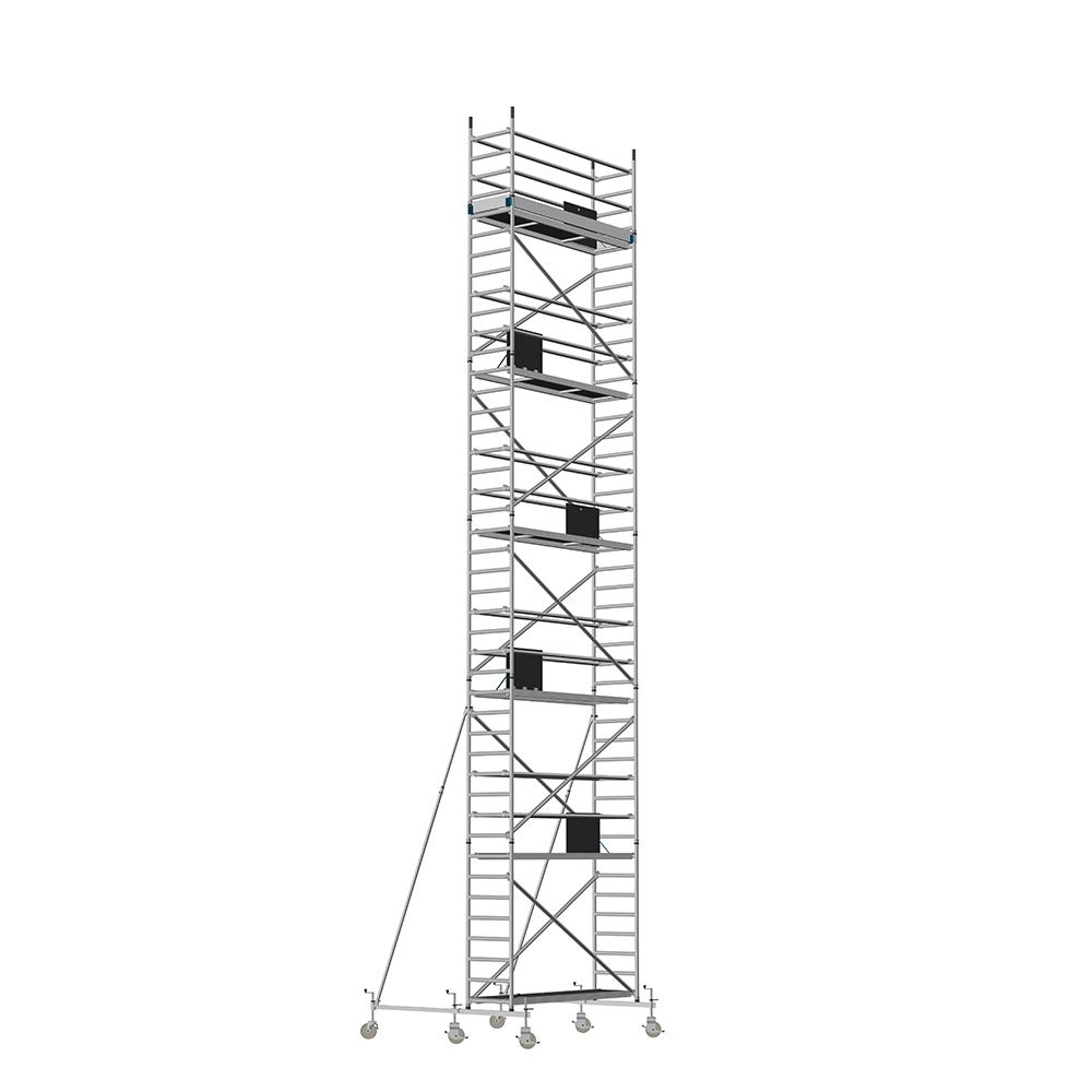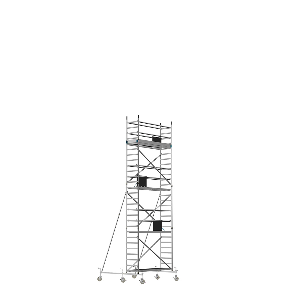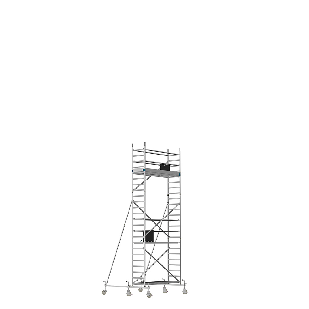 Unsere Fahrgerüste mit Rundsprossen entsprechen einer extra stabilen Industrieausführung. Der Aufbau ist kinderleicht, da es sich um einfache Steckverbindungen handelt. An den Diagonalen und Horizontalen (Geländer) sind Aluminiumklauen angeschweißt, welche formschlüssig über der Rundsprosse liegen. Eine spezielle Sicherung verhindert versehentliches Aushängen.