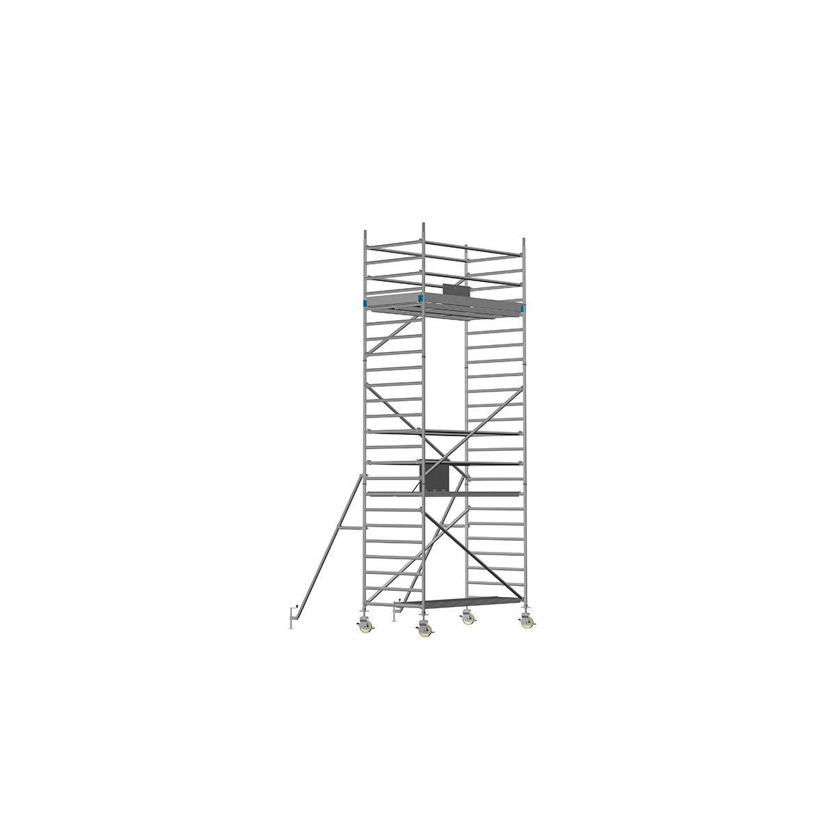 Unsere Fahrgerüste mit Rundsprossen entsprechen einer extra stabilen Industrieausführung. Der Aufbau ist kinderleicht, da es sich um einfache Steckverbindungen handelt. An den Diagonalen und Horizontalen (Geländer) sind Aluminiumklauen angeschweißt, welche formschlüssig über der Rundsprosse liegen. Eine spezielle Sicherung verhindert versehentliches Aushängen.