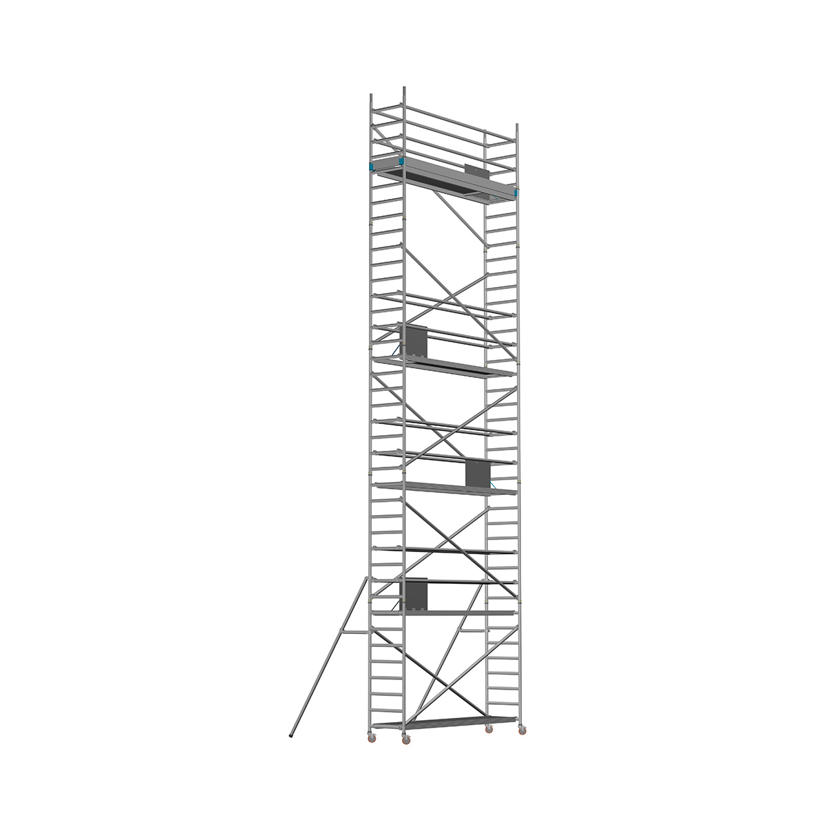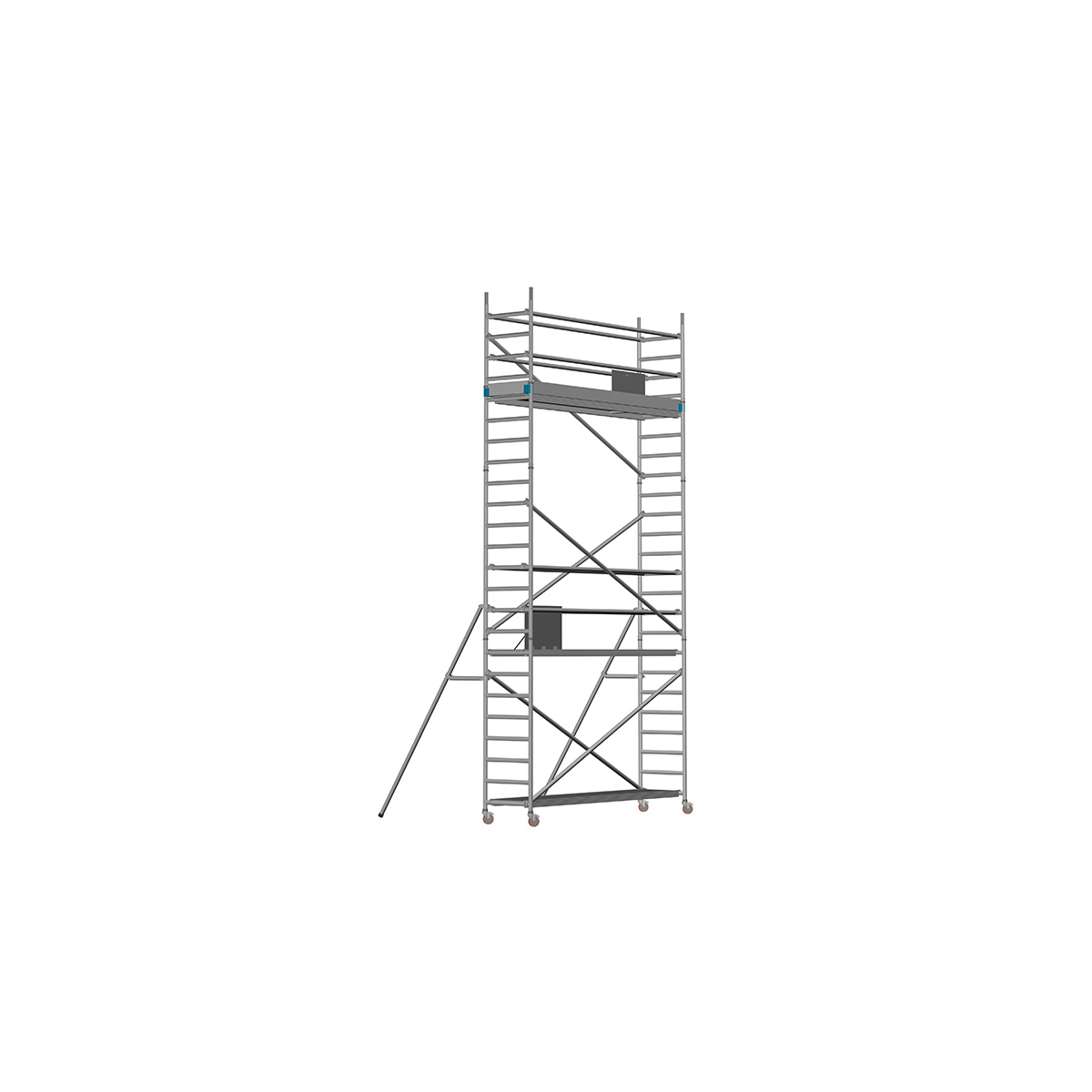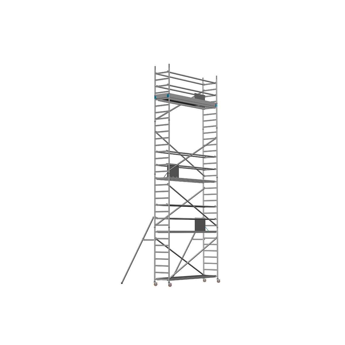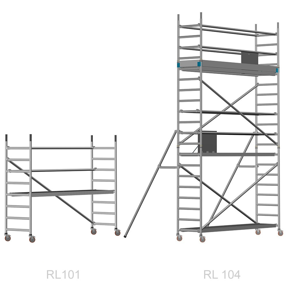 Unsere Fahrgerüste mit Rundsprossen entsprechen einer extra stabilen Industrieausführung. Der Aufbau ist kinderleicht, da es sich um einfache Steckverbindungen handelt. An den Diagonalen und Horizontalen (Geländer) sind Aluminiumklauen angeschweißt, welche formschlüssig über der Rundsprosse liegen. Eine spezielle Sicherung verhindert versehentliches Aushängen.