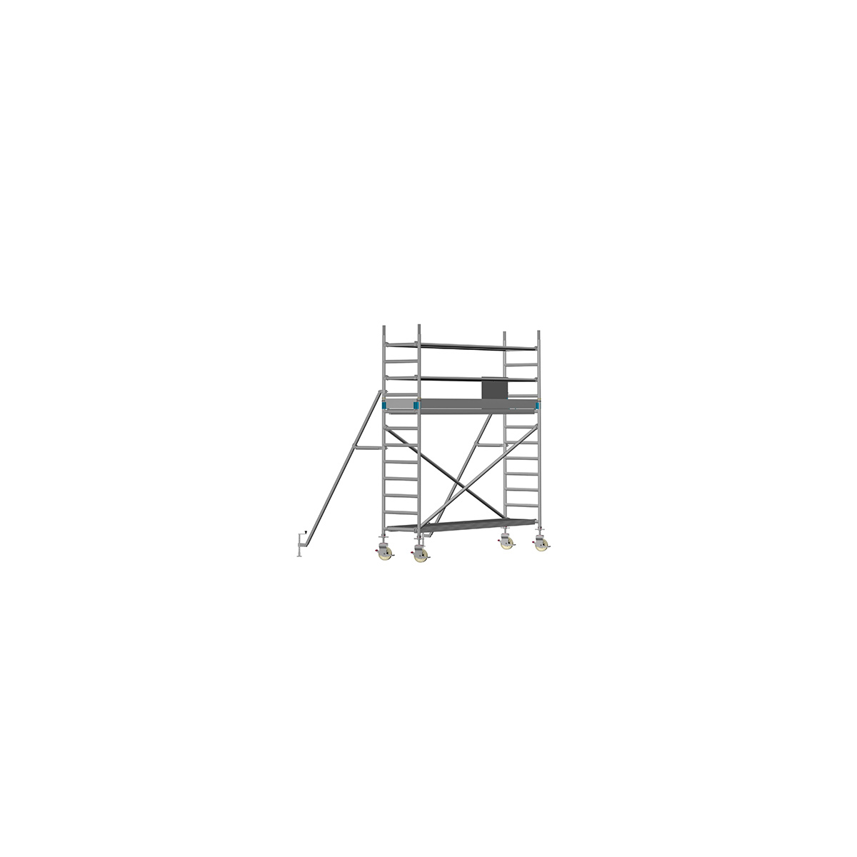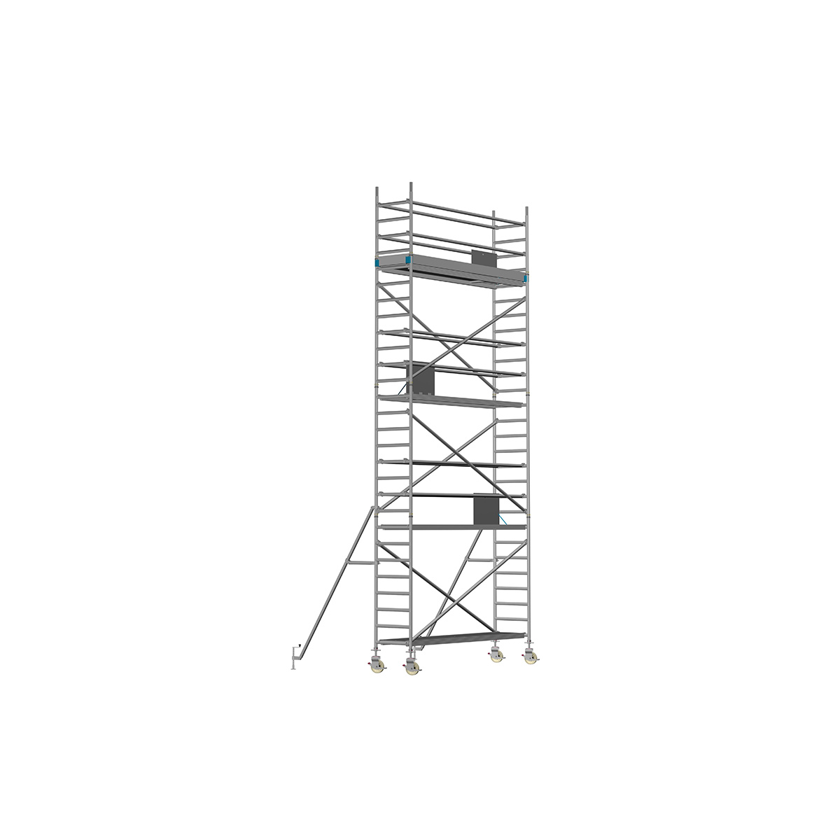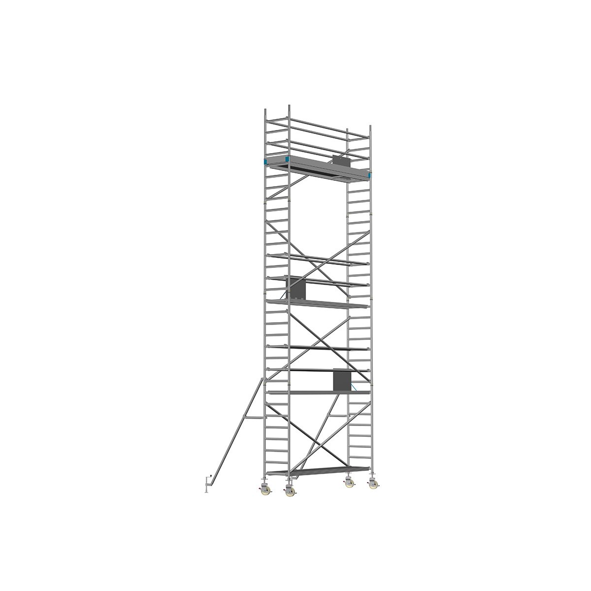Unsere Fahrgerüste mit Rundsprossen entsprechen einer extra stabilen Industrieausführung. Der Aufbau ist kinderleicht, da es sich um einfache Steckverbindungen handelt. An den Diagonalen und Horizontalen (Geländer) sind Aluminiumklauen angeschweißt, welche formschlüssig über der Rundsprosse liegen. Eine spezielle Sicherung verhindert versehentliches Aushängen.