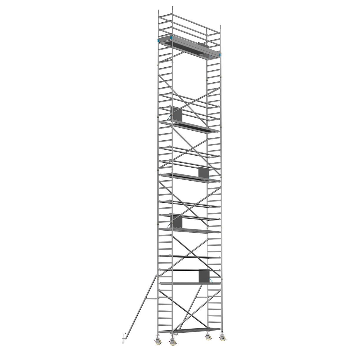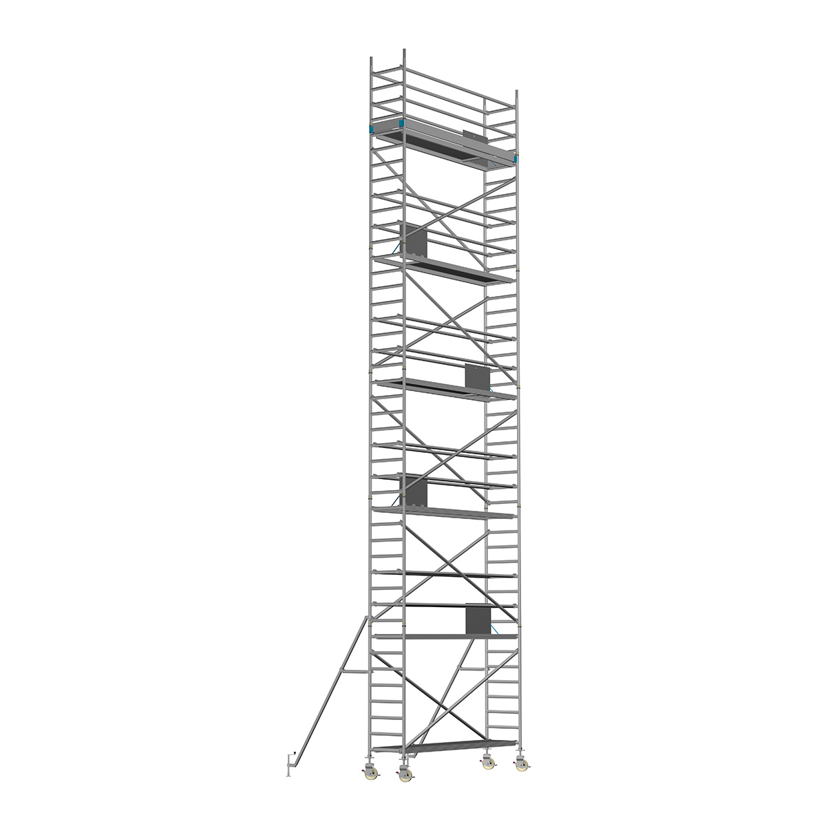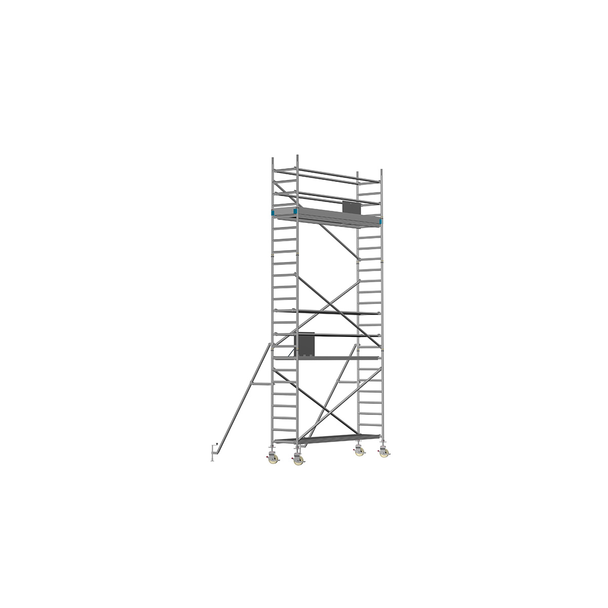 Unsere Fahrgerüste mit Rundsprossen entsprechen einer extra stabilen Industrieausführung. Der Aufbau ist kinderleicht, da es sich um einfache Steckverbindungen handelt. An den Diagonalen und Horizontalen (Geländer) sind Aluminiumklauen angeschweißt, welche formschlüssig über der Rundsprosse liegen. Eine spezielle Sicherung verhindert versehentliches Aushängen.