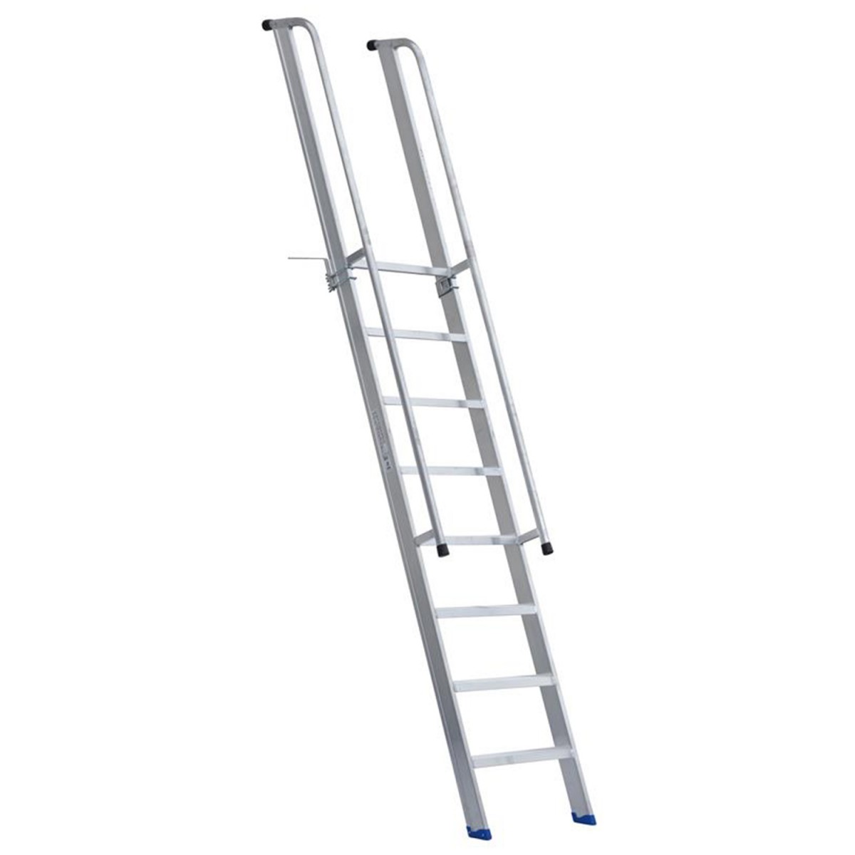 Sicherer und angenehmer Stand durch Breitere Ausführung. Mit beidseitigem Handlauf und Überstieg (1,00m) für noch mehr Sicherheit beim Aufstieg.