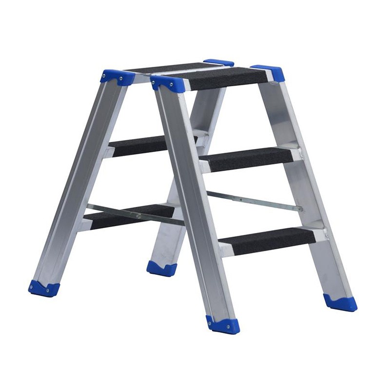 Extra tiefe, bequeme Trittstufen, rutschfest durch Riffelung, beidseitig 3-fach mit dem Holm verschweißt.
