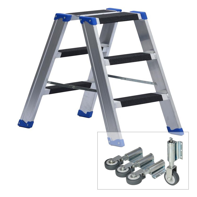 Extra tiefe, bequeme Trittstufen, rutschfest durch Riffelung, beidseitig 3-fach mit dem Holm verschweißt.