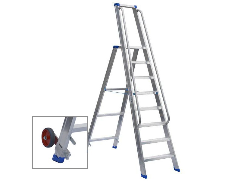 | Art-Nr. | Stufen incl. Plattform | Holmmaß mm | Gewicht kg | Breite unten m | Stand-Höhe m | max. Arbeits-Höhe m | Höhe aufgestellt m | Transport-Länge m | Listen-Preis € | Online-Preis € | |