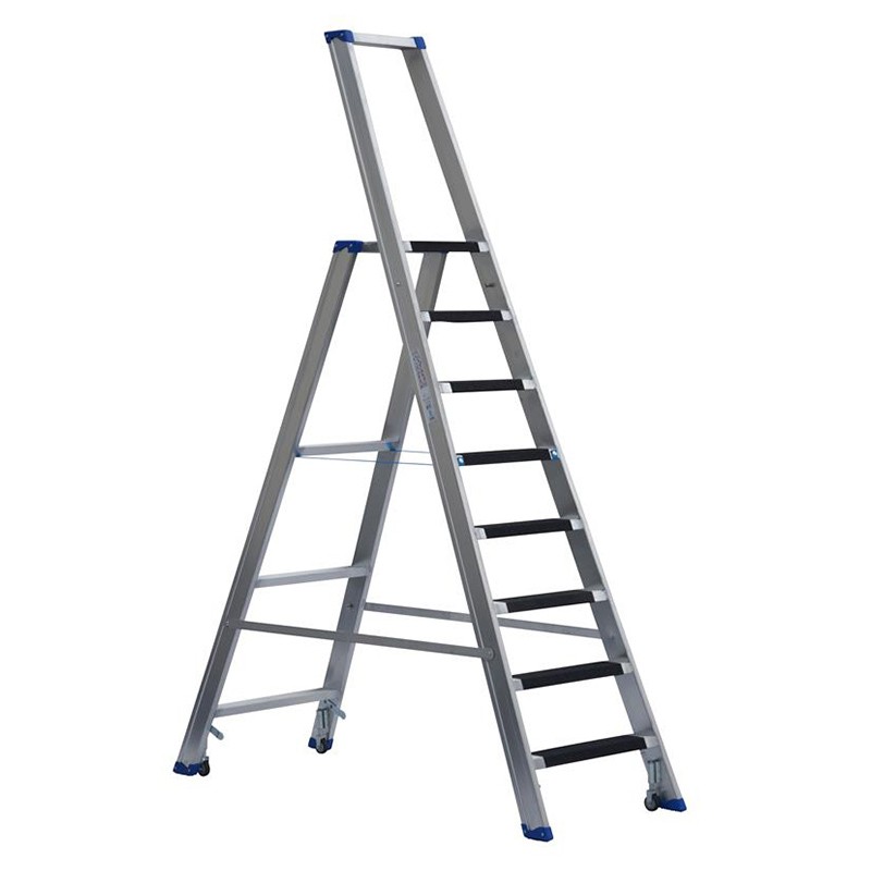 | Art-Nr. | Stufen incl. Plattform | Holmmaß mm | Gewicht kg | Breite unten m | Stand-Höhe m | Höhe aufgestellt m | Transport-Länge m | Listen-Preis € | Online-Preis € | |