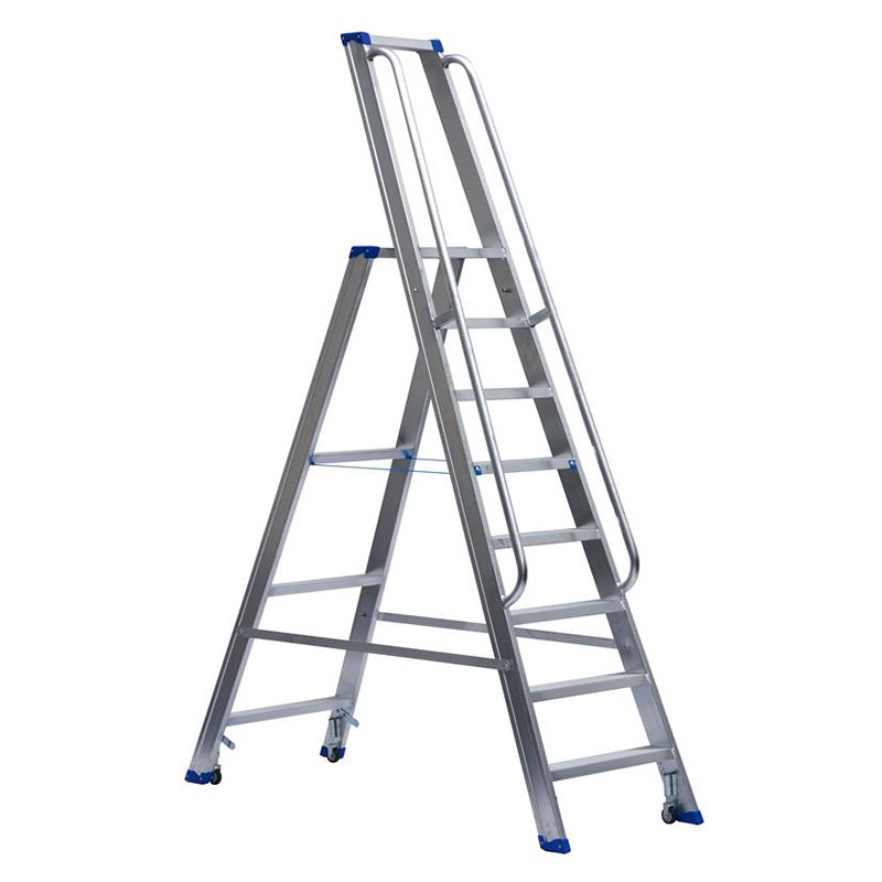 | Art-Nr. | Stufen incl. Plattform | Holmmaß mm | Gewicht kg | Breite unten m | Stand-Höhe m | Höhe aufgestellt m | Transport-Länge m | Listen-Preis € | Online-Preis € | |