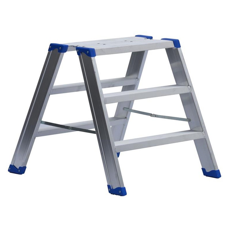 Extra tiefe, bequeme Trittstufen, rutschfest durch Riffelung, beidseitig 3-fach mit dem Holm verschweißt.