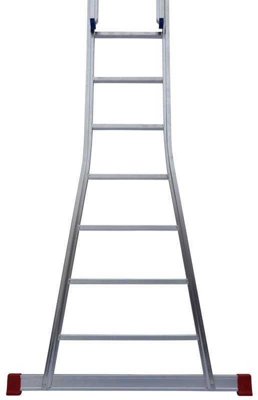 Der auf der Innenseite gestanzte Holm mit 2 Aussteifungsstegen, garantiert mit seiner verschweißten Sprossen-Holm-Verbindung, ein Maximum an Stabilität.