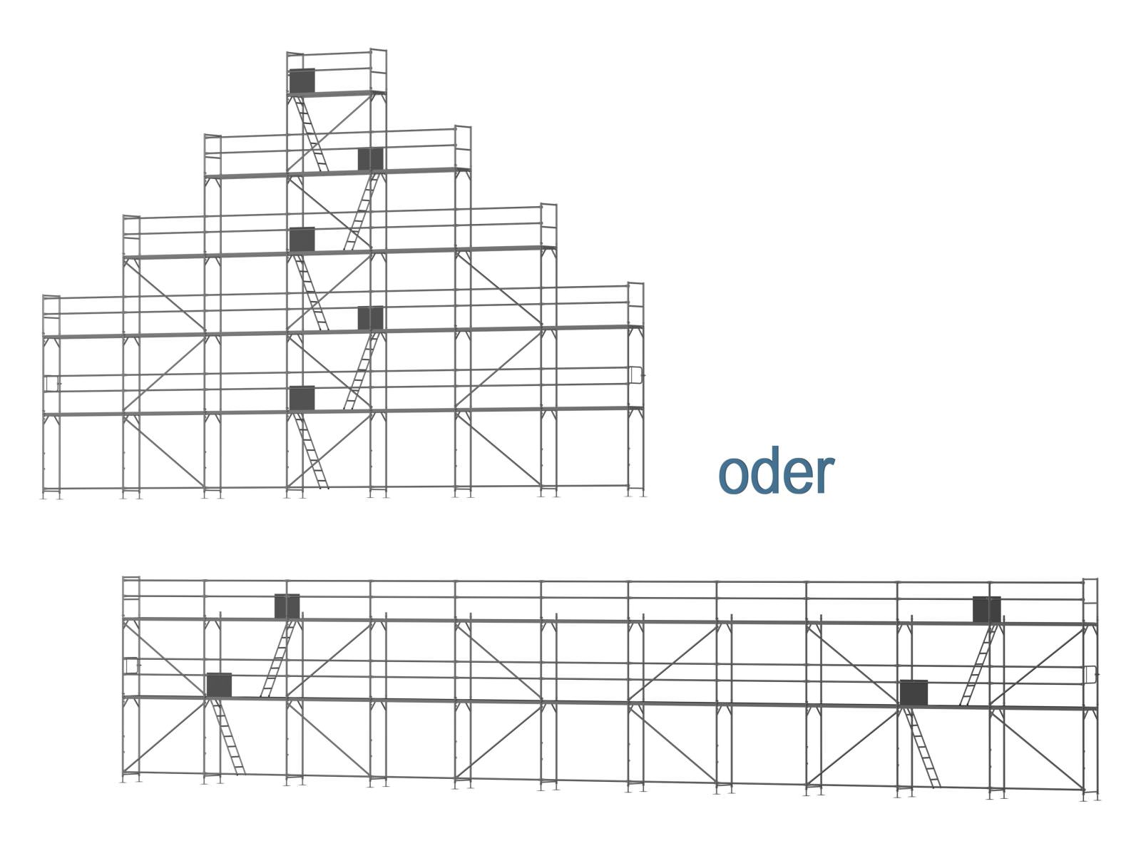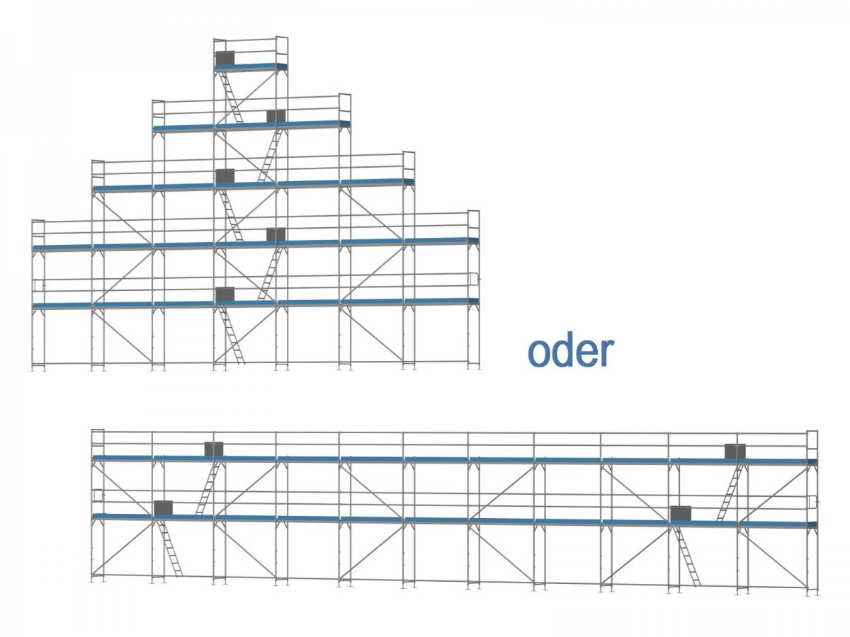 | Art-Nr. | Bezeichnung | Material | inkl. Aufstieg / Befestigung | inkl. Bordbretter | inkl. Teile für Umbau auf Traufseitengerüst | Listen-Preis € | Online-Preis € | |