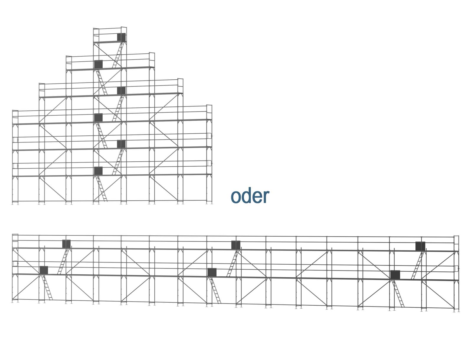 | Art-Nr. | Bezeichnung | Material | inkl. Aufstieg / Befestigung | inkl. Bordbretter | inkl. Teile für Umbau auf Traufseitengerüst | Listen-Preis € | Online-Preis € | |