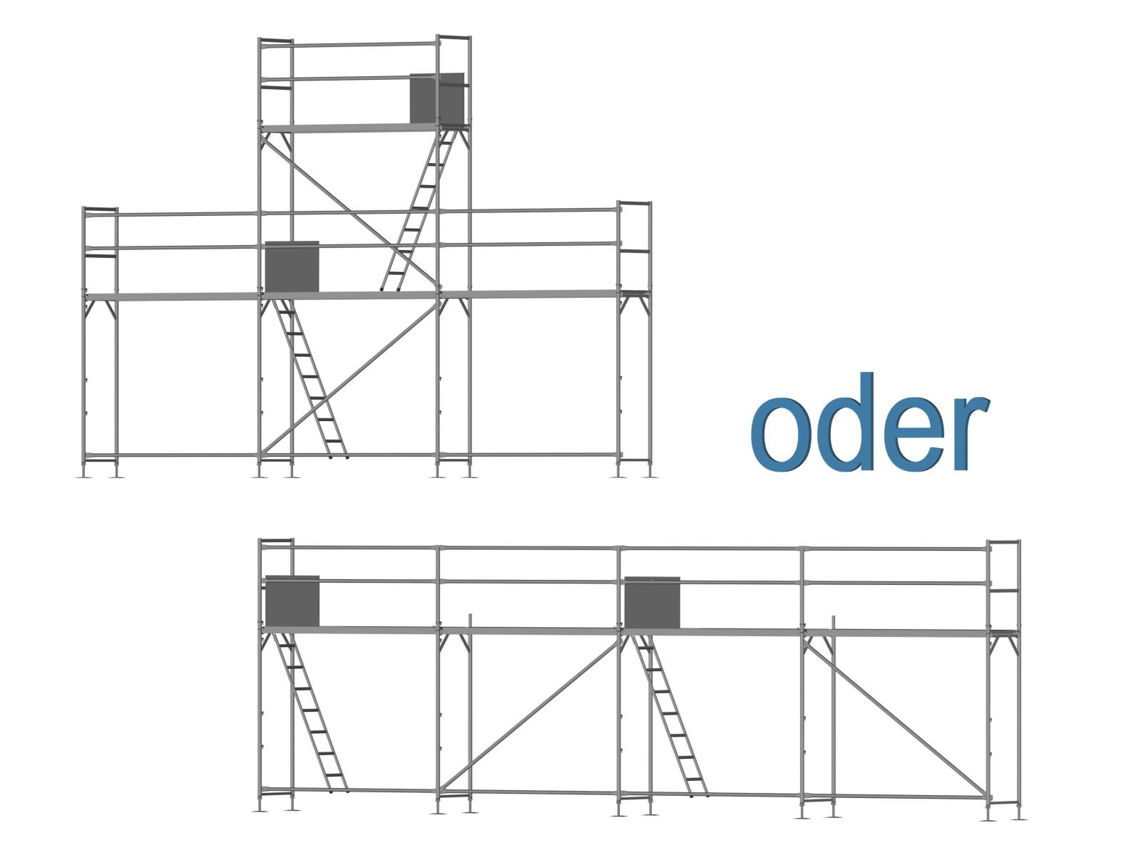 | Art-Nr. | Bezeichnung | Material | inkl. Aufstieg / Befestigung | inkl. Bordbretter | inkl. Teile für Umbau auf Traufseitengerüst | Listen-Preis € | Online-Preis € | |